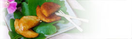 かぼちゃとじゃがいも餅 \400- かごちゃとじゃがいもにデンプンを混ぜ合わせた 手作りの一品! |